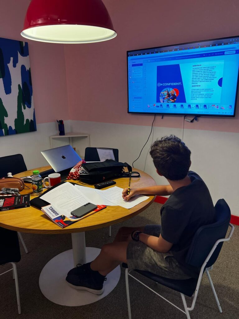 Nossas aulas presenciais acontecem nos espaços premium do WeWork, onde a energia de inovação e networking está em cada detalhe. Estude em ambientes modernos e inspiradores, projetados para estimular a criatividade e a colaboração – elementos essenciais para o aprendizado efetivo de um idioma.
